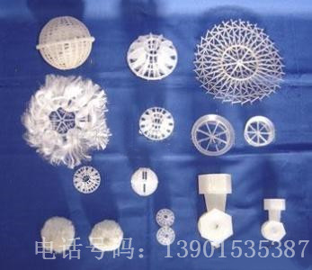 该填料中由聚乙烯材料铸造而成,分内外双层球体外部为中空鱼网状球体,内部为转型球体,在使用过程中,微生物易生成、易更换、耐酸碱、抗老化、不受水流影响、使用寿命长,剩余污泥少,安装方便。